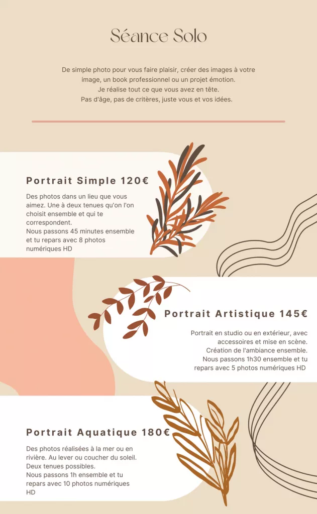 N’hésitez pas à me contacter pour discuter de vos idées, de vos envies et de vos attentes pour votre séance photo de portraits. Ensemble, nous créerons une expérience personnalisée, mettant en valeur votre unicité et votre beauté intérieure.